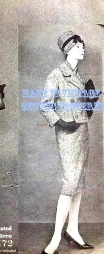 1950s Classy 3 Pc Suit Griffe Pattern Vogue Paris Original 1335 Short Straight Jacket Side Back Button Skirt Version Lovely Bias Overblouse Bateau Neckline Day Or Evening Bust 32 Vintage Sewing Pattern